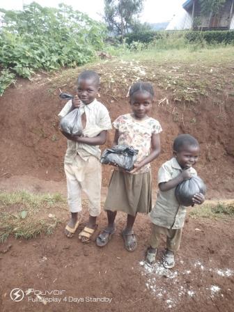 La bouille è stata consegnata porta a porta a 33 bambini che fanno parte del progetto contro la malnutrizione, promosso dal Centro Kitumaini. Alcuni bambini del progetto erano assenti, infatti, per sfuggire ad un possibile contagio alcuni genitori hanno preferito portare i figli presso altre famiglie, alcuni a Bunyakiri a qualche chilometro da Miti, altri a Kavumu, i quali rientreranno presso le proprie abitazioni una volta finita l’emergenza.