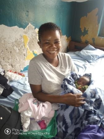 Il Centro Kitumaini assiste anche le donne. Leonce, una loro collega che opera a Gsumoja, ha appena avuto un bambino, partorito nell’ospedale Karanda. Nadine la è andata a trovare e le ha portato cibo e vestiti.